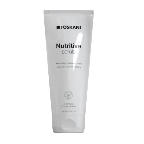 De Nutritive Scrub exfolieert de huid op een voedzame wijze en is geschikt voor een droge en/of ouder wordende huid. De scrub bevat muskus-rozenolie, zaden, vitamine E en bosbessenextract, waardoor de huid direct gladder wordt met minder oneffenheden. Het ruimt dode huidcellen op en verfijnt en verzacht fijne lijntjes. Het geeft de huid een frisse, schone en egale look.